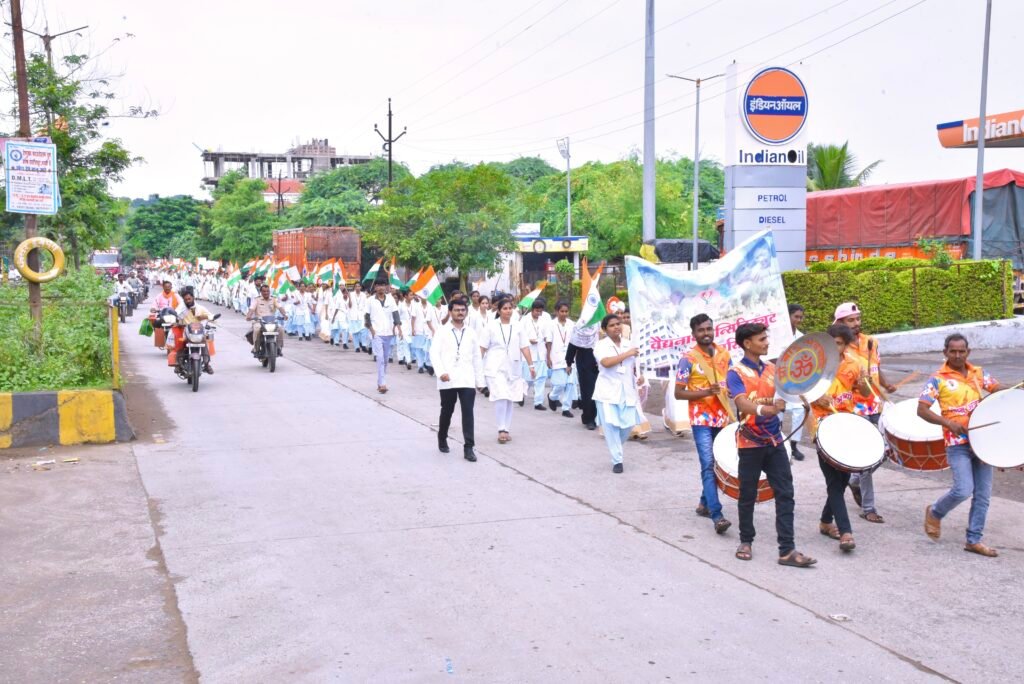 या रॅलीमध्ये विद्यार्थी तिरंगा ध्वज घेऊन उत्साहाने सहभागी झाले होते. विद्यार्थ्यांनी विविध देशभक्तीपर घोषणांचा जयघोष करत, देशाच्या स्वातंत्र्यलढ्याचे महत्त्व आणि त्यागाचा संदेश समाजात पोहोचवला.